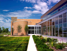 The Dublin Methodist Hospital is located on an 85-acre greenfield site, with housing and retail to the north and east, and farmland to the west and south. As a result, the essential goal for the massing was to break down the scale of the building and continue the natural elements of the site into the hospital.