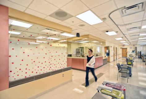 The expansion remodels the Oncology and Prosthetics Clinics while expanding them into space previously used as a Women’s Clinic. To increase privacy, address growth and provide an additional level of infection control, five semi-private Infusion Rooms were designed for Oncology, along with a Staff Lounge, Lab Draw, new Nurse Station, and Procedure Room. A Shoe Fitting Room, Occupational Therapist Room, Offices, Storage, and a more efficient Registration Area were developed for the Prosthetics clinic.
